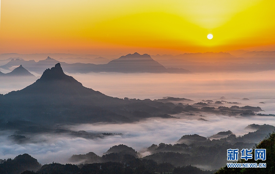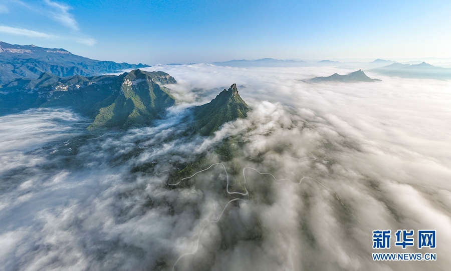 宛如薄紗的平流霧在山澗河谷漫舞。新華網(wǎng)發(fā)(瞿明斌 攝)