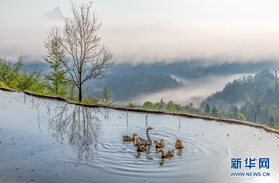 春雨洗禮后的山鄉(xiāng)田野美如畫卷。新華網(wǎng)發(fā)(瞿明斌 攝)