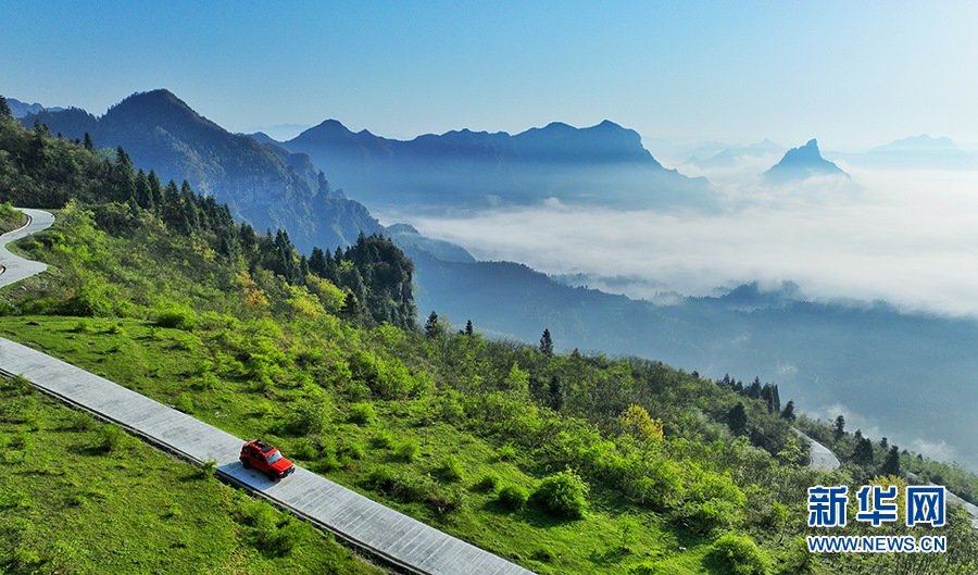 山巒、鄉(xiāng)村公路若隱若現(xiàn),好一幅春和景明的山鄉(xiāng)水墨畫。新華網(wǎng)發(fā)(汪新 攝)