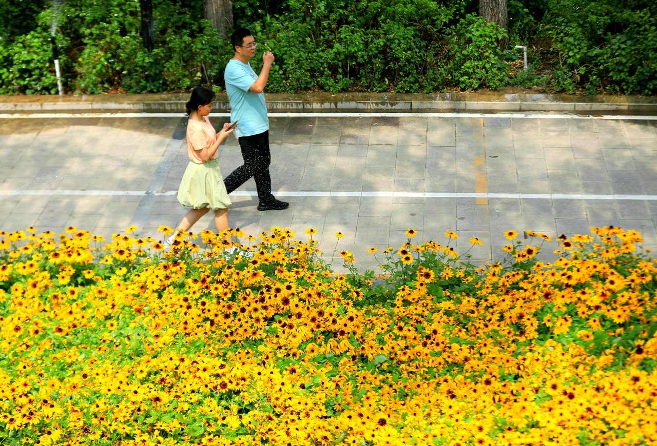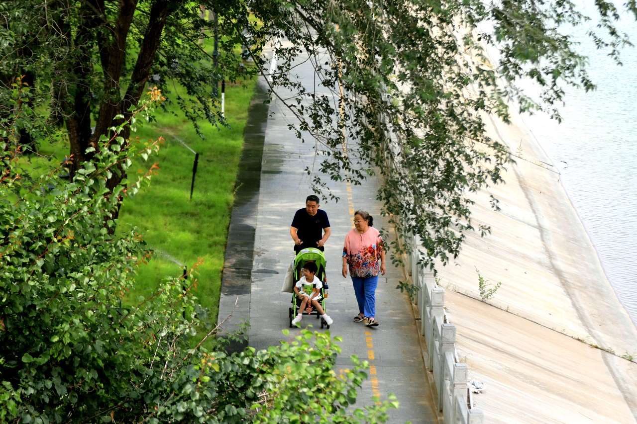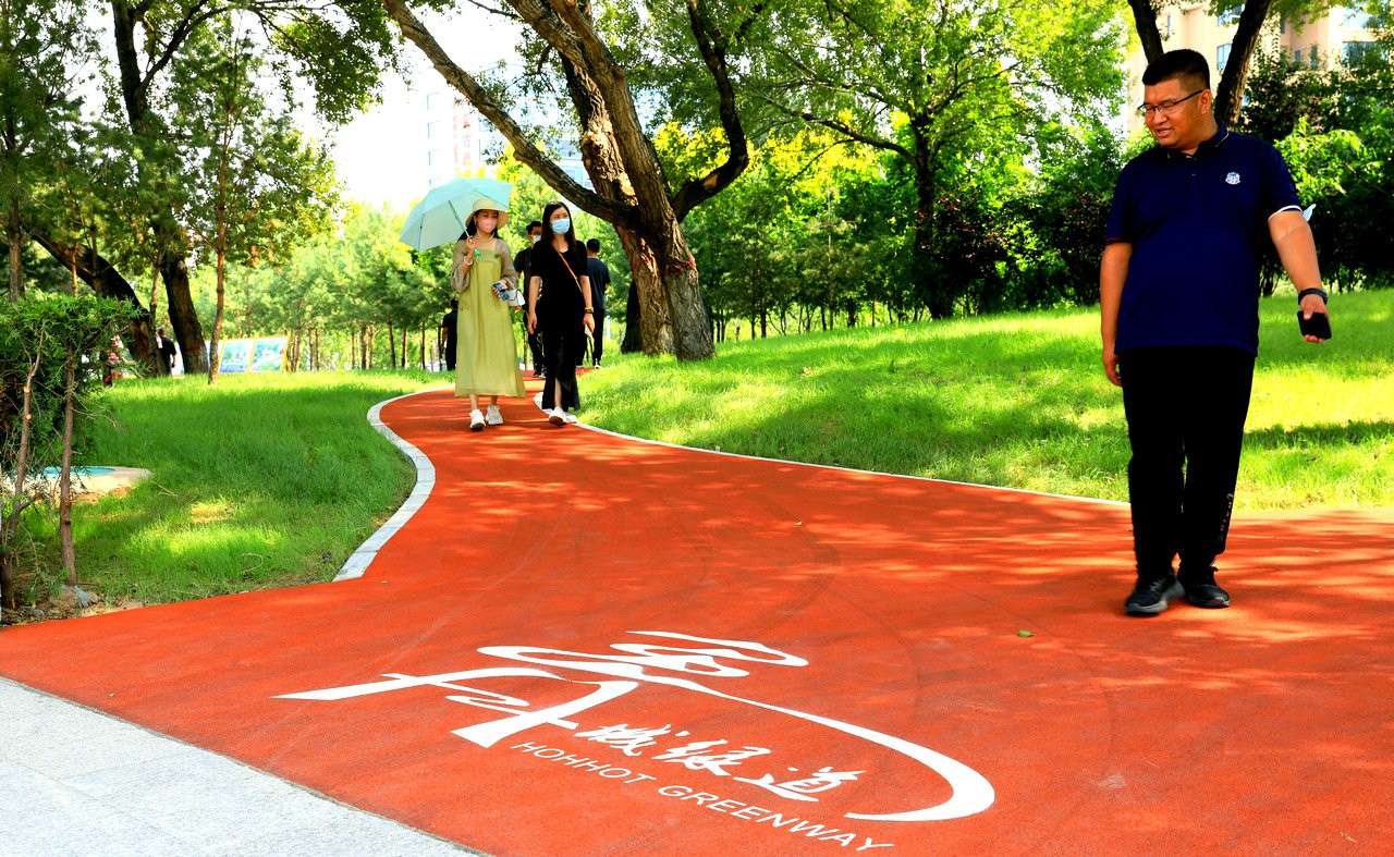 8月4日,市民在呼和浩特萬(wàn)通路“青城綠道”穿行。