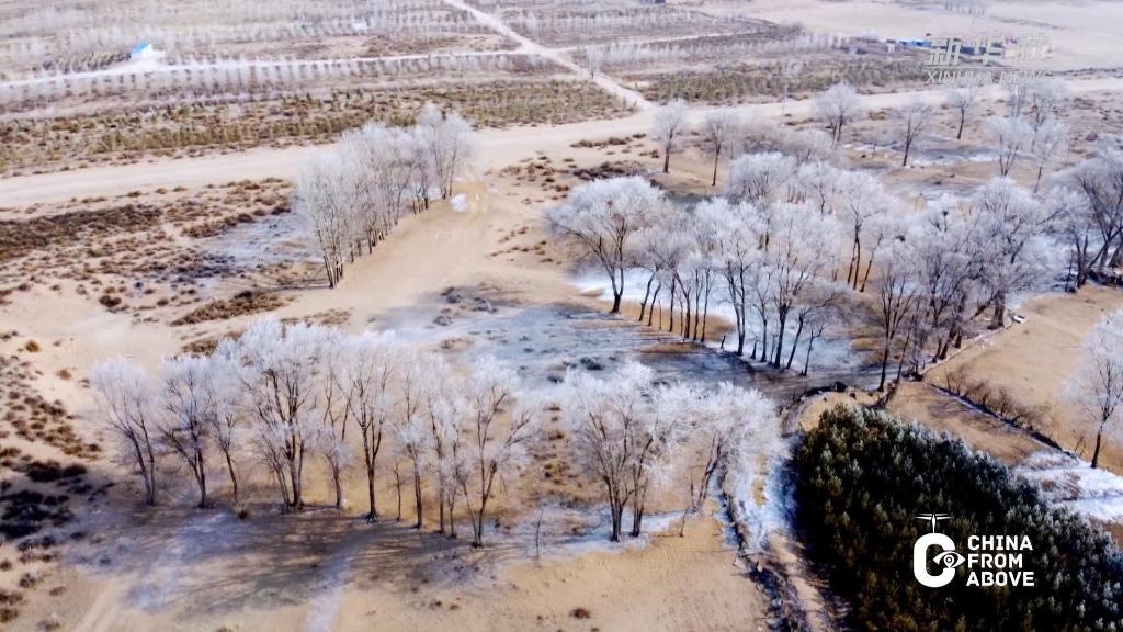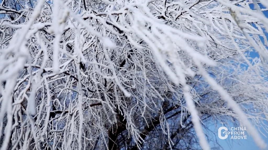 寒冬時節(jié),內蒙古自治區(qū)鄂爾多斯市杭錦旗出現(xiàn)大面積的霧凇景觀,美不勝收。晶瑩剔透的冰晶掛滿樹梢,仿佛蒙上一層唯美的白紗。