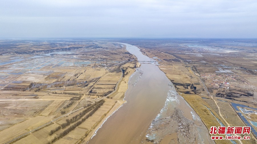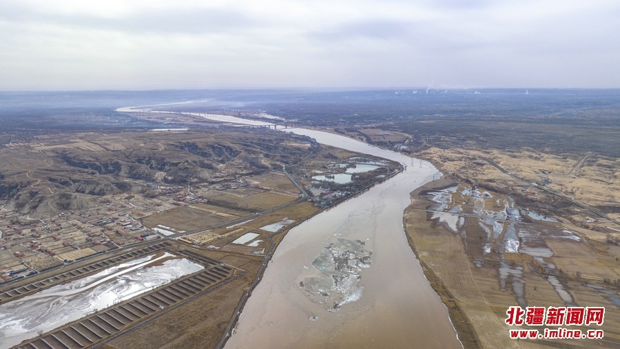 3月11日,空中俯瞰黃河呼和浩特托克托縣段。近日,隨著北方氣溫逐漸回升,黃河托克托縣段冰河加速開河。 樂(lè)炎攝影報(bào)道