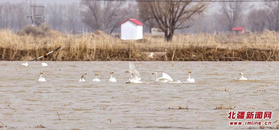 3月11日,幾只天鵝從黃河呼和浩特托克托縣段上空飛過(guò)。近日,隨著北方氣溫逐漸回升,黃河托克托縣段冰河加速開河。 樂(lè)炎攝影報(bào)道