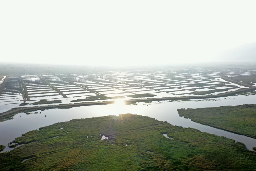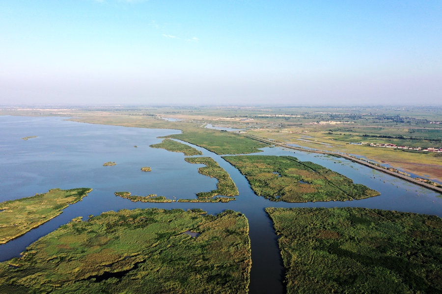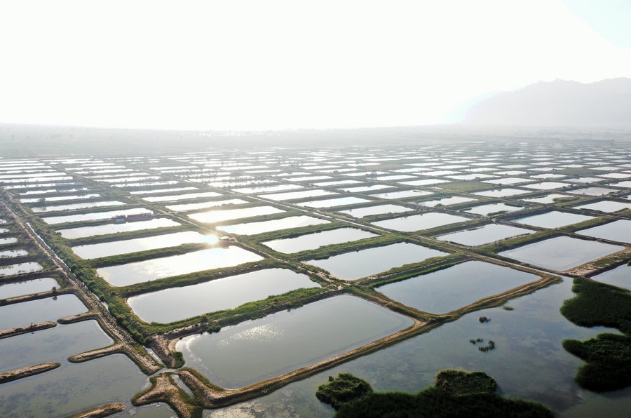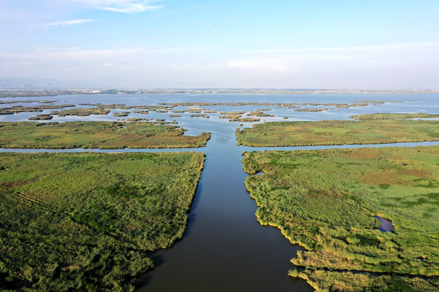 夏日的哈素海濕地,湖水清波蕩漾,水鳥(niǎo)嬉戲成群,山湖相映,一派生機(jī)。