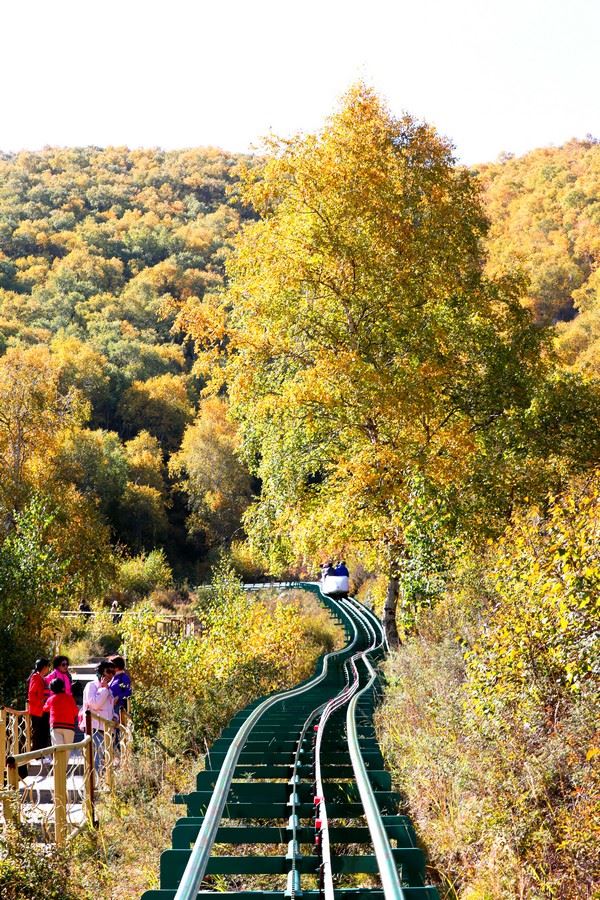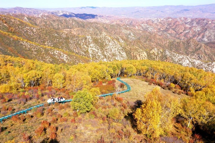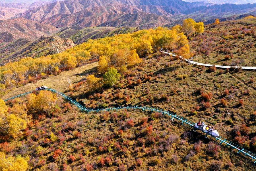 9月26日,游客乘坐小火車欣賞馬鞍山秋色