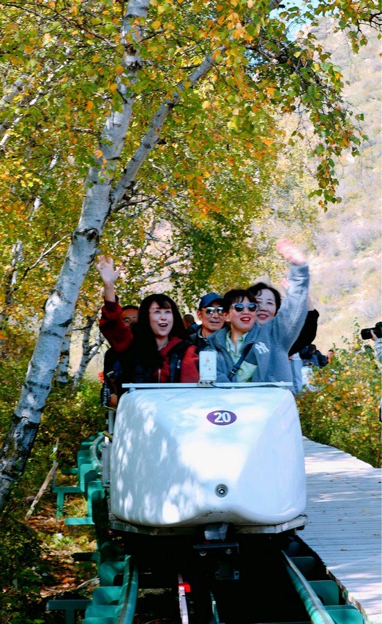 9月26日,游客乘坐小火車游玩固陽馬鞍山