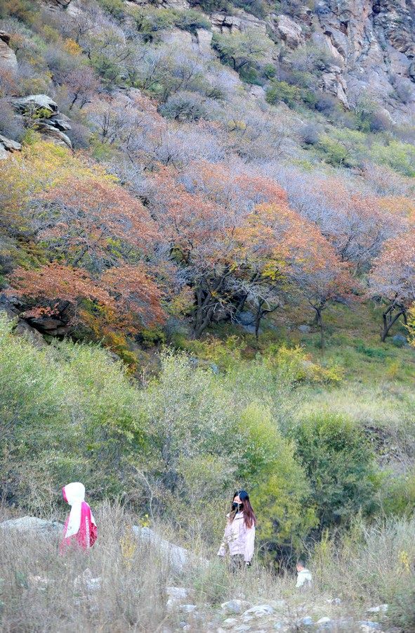 10月7日,呼和浩特大青山小井溝內,秋色五彩斑斕層林盡染,眾多游客身臨其境流連忘返。 北疆新聞記者 張楊攝影