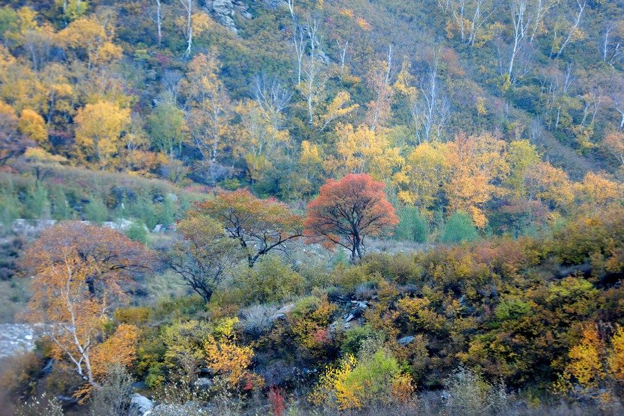 10月7日,呼和浩特大青山小井溝內,秋色五彩斑斕層林盡染。 北疆新聞記者 張楊攝影