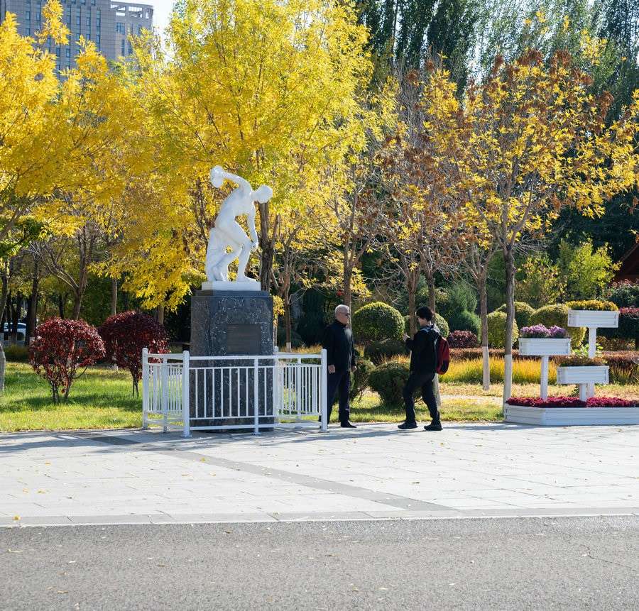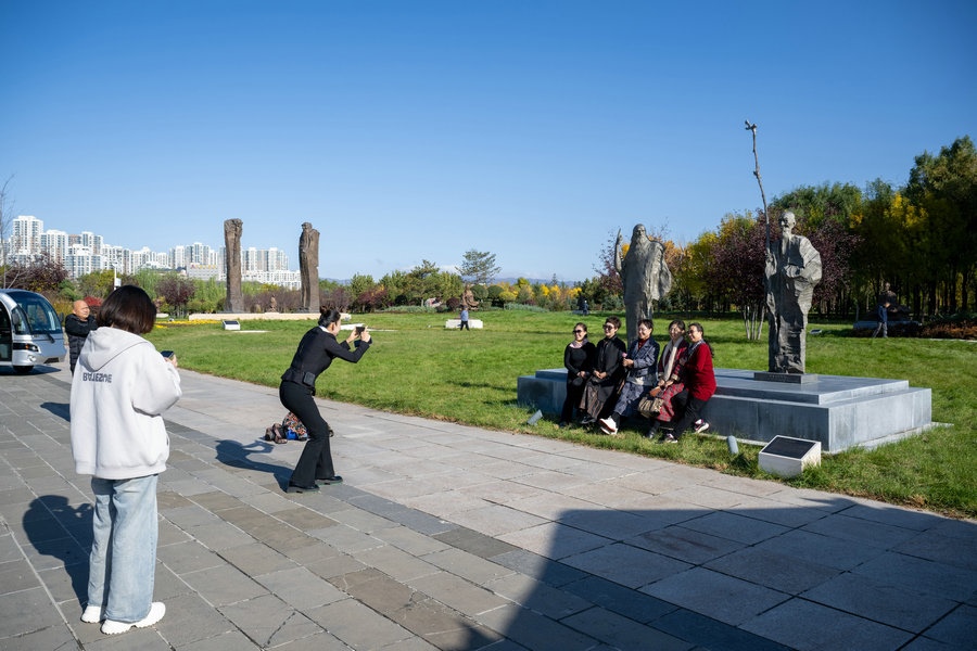 10月18日 游客在呼和浩特國際雕塑園拍照留念
