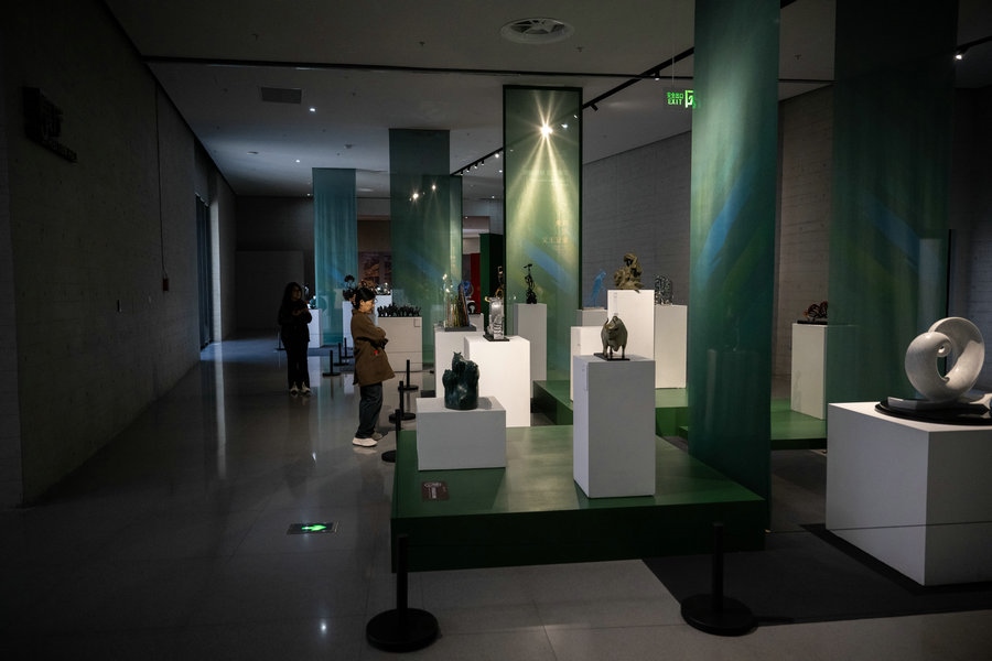 10月18日 游客在呼和浩特雕塑藝術(shù)館