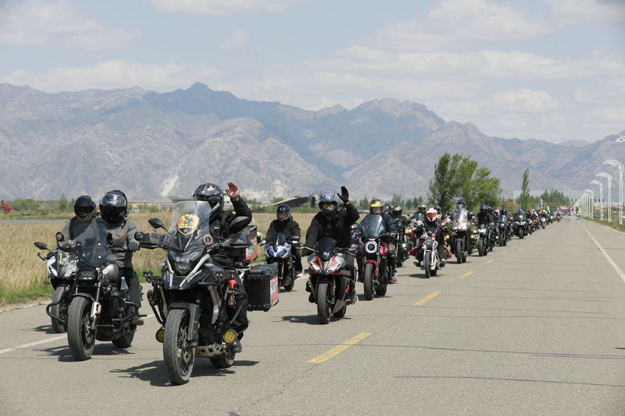 600多輛機車沿著哈素海湖畔炫酷巡游
