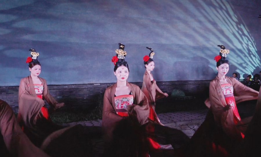 傍晚6時,活動在實景舞蹈《古城賞月》中拉開帷幕。演員們身著飄逸漢服,伴隨悠揚(yáng)古樂翩躚起舞,再現(xiàn)古代市井賞月之景,瞬間將觀眾帶入詩意盎然的歷史長河。隨后,晉劇《繁華》以高亢激越的唱腔、細(xì)膩傳神的表演,展現(xiàn)了晉地戲曲的獨特韻味,贏得陣陣掌聲。
