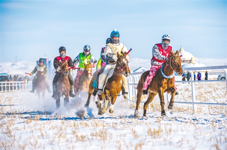 1月18日,錫林浩特市那達(dá)慕風(fēng)情園內(nèi)馬蹄踏雪、人聲鼎沸,“歌游內(nèi)蒙古·暢享錫林浩特”——冬季那達(dá)慕暨蒙古馬超級聯(lián)賽在歡騰的歌聲中拉開序幕。開幕式上,隨著馬蹄的噠噠聲,一支雄壯的馬隊踏雪而來,騎手們身著艷麗的蒙古袍,駕馭著矯健的蒙古馬,以整齊的隊列自遠(yuǎn)處緩緩走來。歌聲悠揚,舞姿豪邁,演員們以動人的演繹,完美詮釋了力量與藝術(shù)之美。本次賽事包含15公里耐力賽、10公里3人團(tuán)體接力賽、跑馬射箭、跑馬拾哈達(dá)、6公里走馬及搏克比賽等比賽項目。賽場上,騎手們馭馬飛馳,人與馬默契配合,在銀裝素裹的雪原上縱橫馳騁。在跑馬射箭與跑馬拾哈達(dá)項目上,騎手在飛奔的馬匹上挽弓搭箭、俯身拾物,動作行云流水,精湛技藝引來觀眾陣陣驚呼與贊嘆。除了扣人心弦的比賽,本次活動還為游客打造了豐富的冰雪互動體驗。冰雪涮肉宴香氣四溢,草原篝火電音派對將熱情推向高潮,千人雪戰(zhàn)、雪地拔河等趣味項目讓游客親身參與,盡情享受冰雪樂趣?,F(xiàn)場還同步舉辦了錫林浩特“伊德喜”草原冬儲肉展銷活動,讓游客在觀賽之余,還能選購到正宗錫林郭勒牛羊肉,體驗純正的草原風(fēng)味。(記者