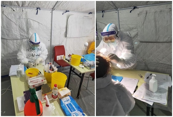 每天她們在臨時搭建的帳篷中連續(xù)工作十幾個小時,有時候檢查的人數(shù)較多,還需要加班加點(diǎn),她經(jīng)常累得腰酸背痛,回到駐地一倒頭就睡著了。