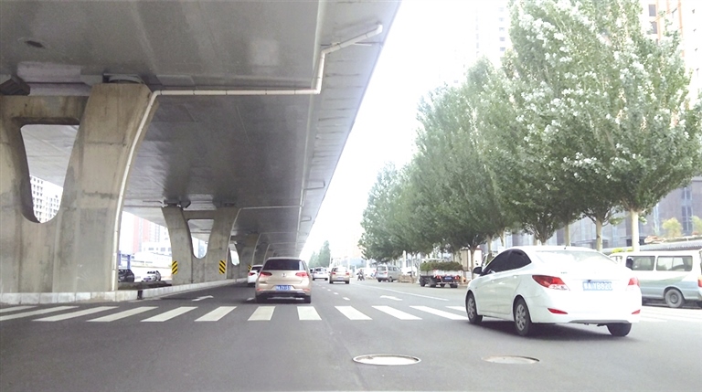 井蓋高低不平金海路高架橋下輔道很顛簸 攝影/北方新報正北方網首席記者 張學博