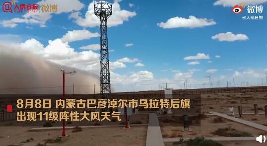 8月8日16時12分至16時23分,內(nèi)蒙古自治區(qū)巴彥淖爾市烏拉特后旗獲各琦蘇木海力素國家基準(zhǔn)氣候站出現(xiàn)11級陣性大風(fēng)天氣,最大瞬時風(fēng)速28.5m/s,達(dá)到11級,海力素最小能見度192米,出現(xiàn)強(qiáng)沙塵暴天氣。(張棖 王衛(wèi)東)