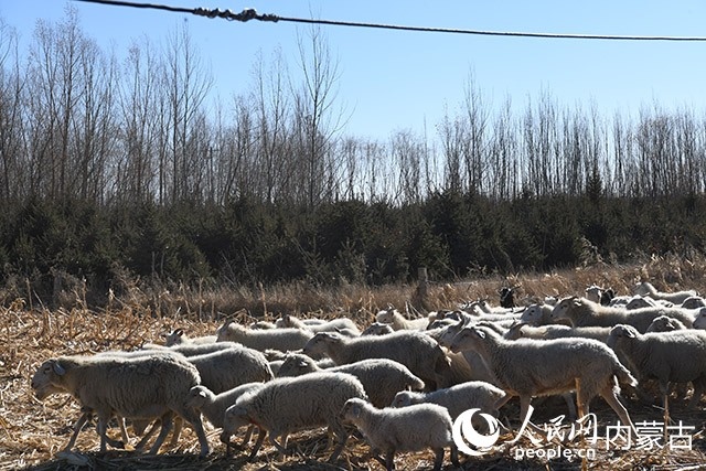 內(nèi)蒙古初冬,暖陽微燥。牧民楊寶寶的100多只羊正在院子前的空地上曬太陽。雪白的羊群映得小院磚明瓦亮。楊寶寶說話時(shí),嘴角總是上揚(yáng)的,黝黑的皮膚上笑出深深的褶子。