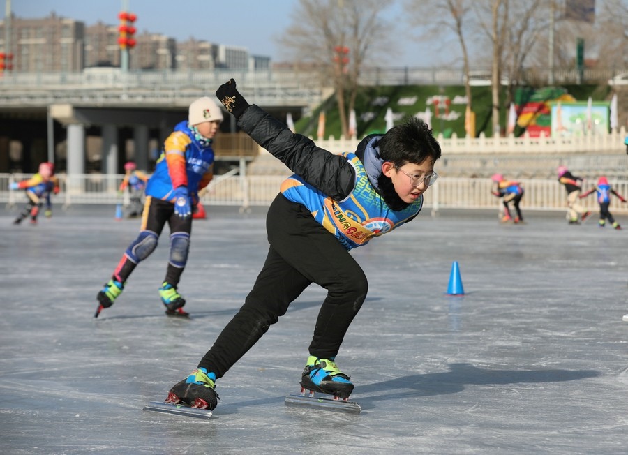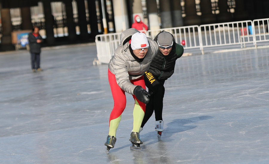冰雪愛好者在東河冰雪場滑冰