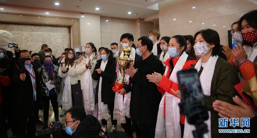 2022年1月3日晚,WCBA衛(wèi)冕總冠軍內(nèi)蒙古農(nóng)信女籃載譽(yù)歸來,在呼和浩特白塔國際機(jī)場受到球迷的熱烈歡迎。