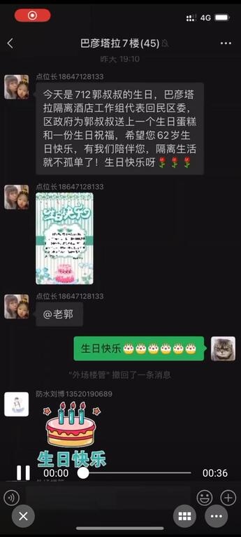 “60多年從來沒過過生日,沒想到在隔離酒店吃到了人生的第一個(gè)生日蛋糕!謝謝你們!”住在巴彥塔拉隔離酒店的郭連元對(duì)酒店的貼心服務(wù)感動(dòng)不已。