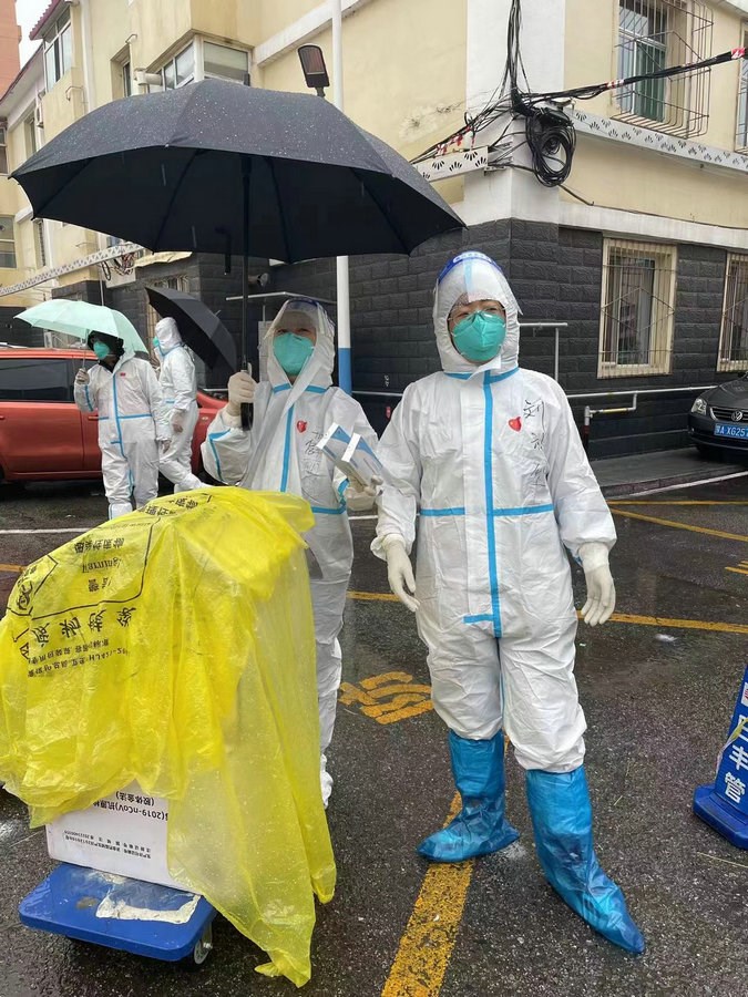 “我們倆都是機(jī)關(guān)下沉到社區(qū)的黨員志愿者。剛開(kāi)始,大家都是自發(fā)的,我們每個(gè)人都是這樣,默默奉獻(xiàn),因?yàn)?,我既是黨員,也是社區(qū)的居民,這是我應(yīng)該做的?!毖惥暾f(shuō)。