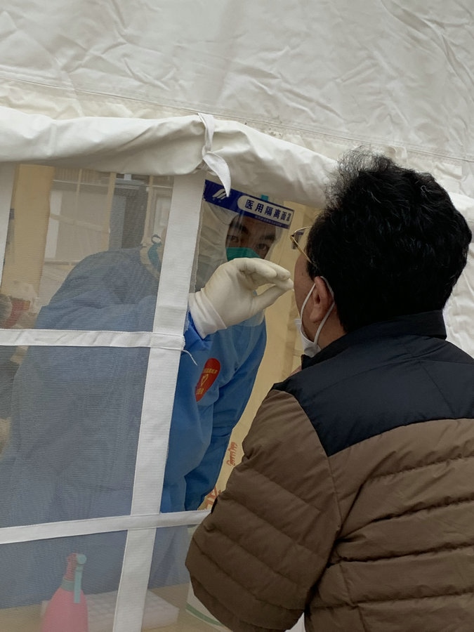 “我加入團(tuán)隊(duì)的時(shí)候,小區(qū)正好出現(xiàn)了陽(yáng)性感染者,這個(gè)時(shí)期是最困難的。我就想,既然選擇了做這個(gè)事,就要義無(wú)反顧?!睆埿∮抡f(shuō),“那會(huì)兒都是前一天晚上才通知第二天核酸要怎么采集,我們就當(dāng)晚商量第二天在哪兒采集核酸。因?yàn)楫?dāng)初還沒(méi)有搭帳篷,為了快速采集,有時(shí)還要增加一組核酸采樣人員,我們還要考慮在哪選址。其實(shí)剛開(kāi)始,真的是特別困難。”