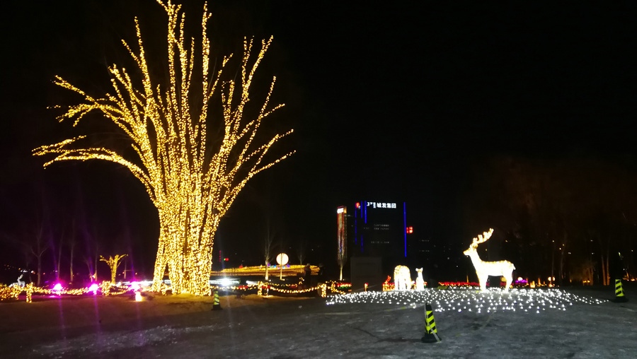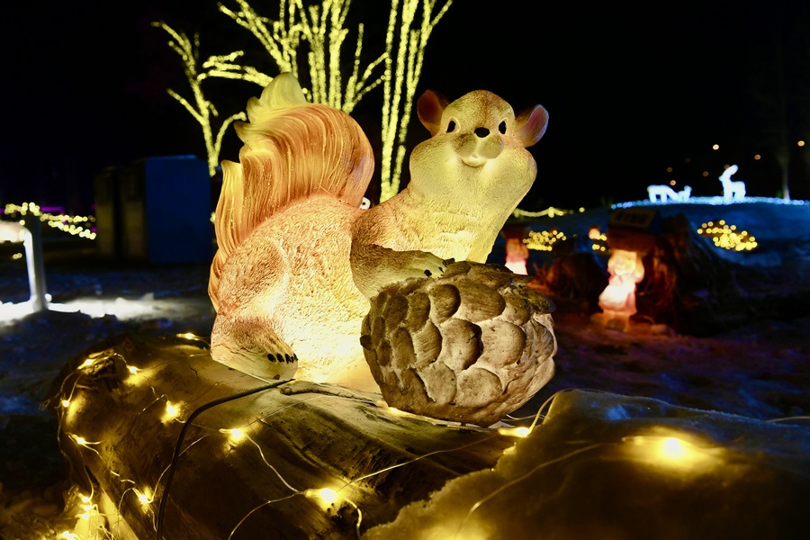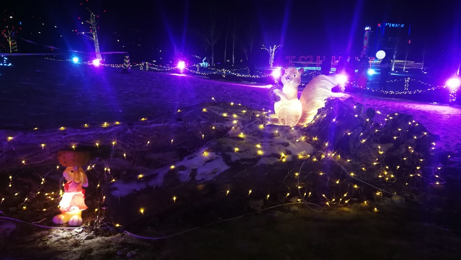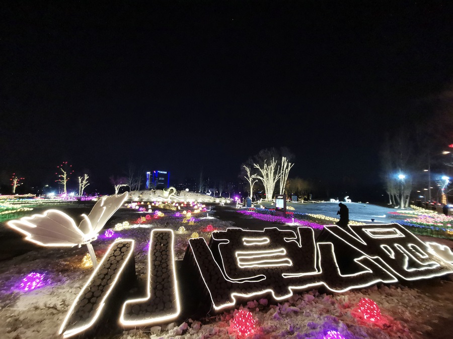 串燈、月球燈、抱樹燈、地插花、氣球燈點(diǎn)綴,搭配動物造型燈,整個小草公園生機(jī)勃勃。“看那邊還有雪人”,小朋友的歡呼聲打破了夜晚的寂靜。