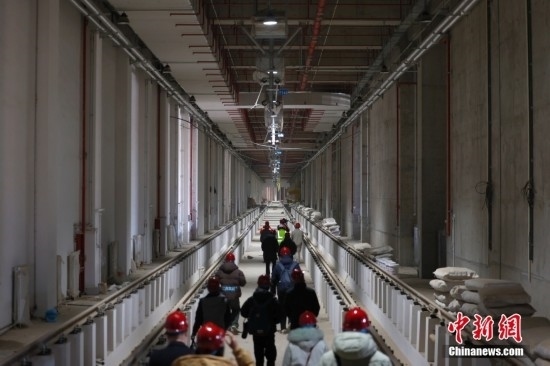 2月20日,工作人員在北京地鐵12號(hào)線東壩車輛段巡查列車。北京地鐵12號(hào)線正線全長為29.6km,西起西四環(huán)四季青橋南,東至東壩北街,途經(jīng)海淀、西城、東城、朝陽四個(gè)行政區(qū),全線共設(shè)21座車站,其中換乘站15座,全線建成通車后,將與4號(hào)線、5號(hào)線、8號(hào)線等12條線路實(shí)現(xiàn)換乘。當(dāng)前12號(hào)線車輛陸續(xù)進(jìn)場,工程正在加速推進(jìn)。中新社記者 富田 攝
