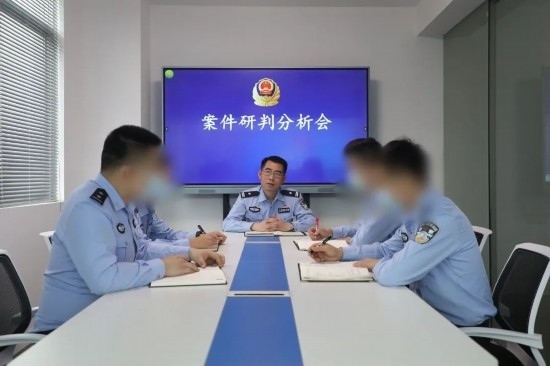 圖為黃日和同事召開案件研判分析會。