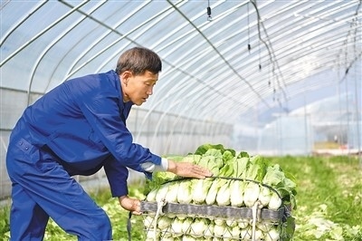 江西省上饒市鉛山縣通過“龍頭企業(yè)+村集體經(jīng)濟(jì)合作社+農(nóng)戶”模式,建設(shè)萬畝蔬菜基地,促進(jìn)農(nóng)民增收。圖為3月6日,村民在鉛山縣永平鎮(zhèn)缸瓦窯萬畝蔬菜基地采收蔬菜。 丁銘華攝(人民視覺)