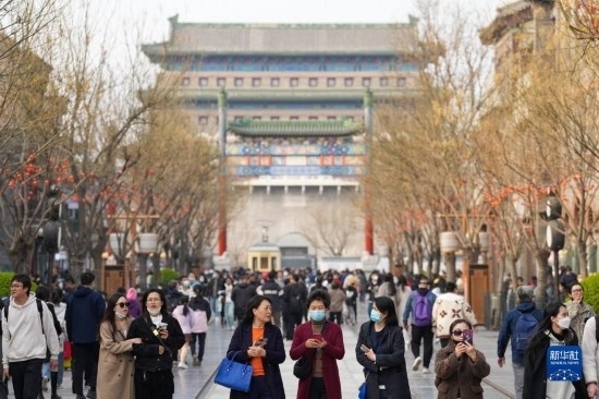 當(dāng)日,北京前門(mén)大街商圈游人如織,眾多市民游客在這里參觀游覽。