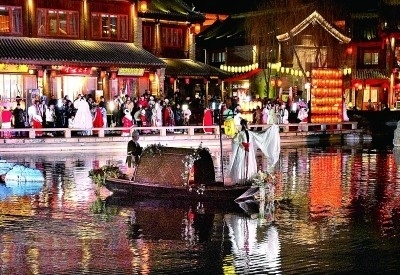 演員在河南省洛陽(yáng)市洛邑古城內(nèi)為游客表演。新華社發(fā)