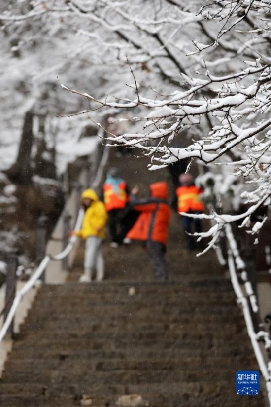 受冷空氣影響,位于甘肅省平?jīng)鍪械尼轻忌骄皡^(qū)迎來(lái)降雪,景色如畫。
