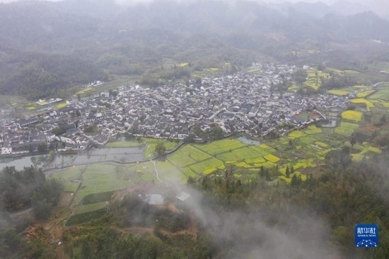 仲春時節(jié),細(xì)雨如煙,安徽省黃山市黟縣處處春意盎然,田園花海與鱗次櫛比的徽派建筑相映成趣,游人徜徉其間,感受詩情畫意的生態(tài)鄉(xiāng)村。
