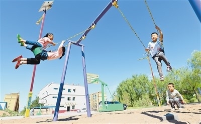 去年以來,甘肅省張掖市民樂縣把生態(tài)及地質(zhì)災(zāi)害避險(xiǎn)搬遷與城鎮(zhèn)化建設(shè)相結(jié)合,推動(dòng)城鄉(xiāng)融合發(fā)展。圖為搬遷到民樂縣樂民新城的孩子們在小區(qū)內(nèi)玩耍。王 將攝(人民圖片)
