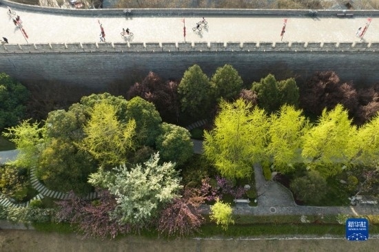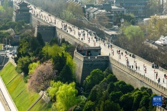近日,陜西西安明城墻旁春意漸濃,吸引不少市民游客前來(lái)踏青。