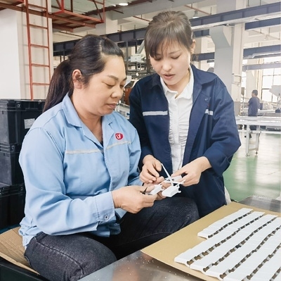 “沒問題,發(fā)微信跟我說就行!”黃富安爽快回答。他告訴記者,自己既是指導(dǎo)工,也是質(zhì)檢員,這兩條“媽媽?shí)彙鄙a(chǎn)線和工廠其他車間沒什么區(qū)別?!百|(zhì)量要求都一樣,就是工作時(shí)間更加靈活彈性,工作安排更加人性化,方便女職工照顧小孩?!?/P>