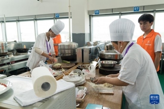 4月12日,在四川省綿陽市公共實(shí)訓(xùn)基地,參加中式面點(diǎn)項(xiàng)目的選手正在準(zhǔn)備食材。