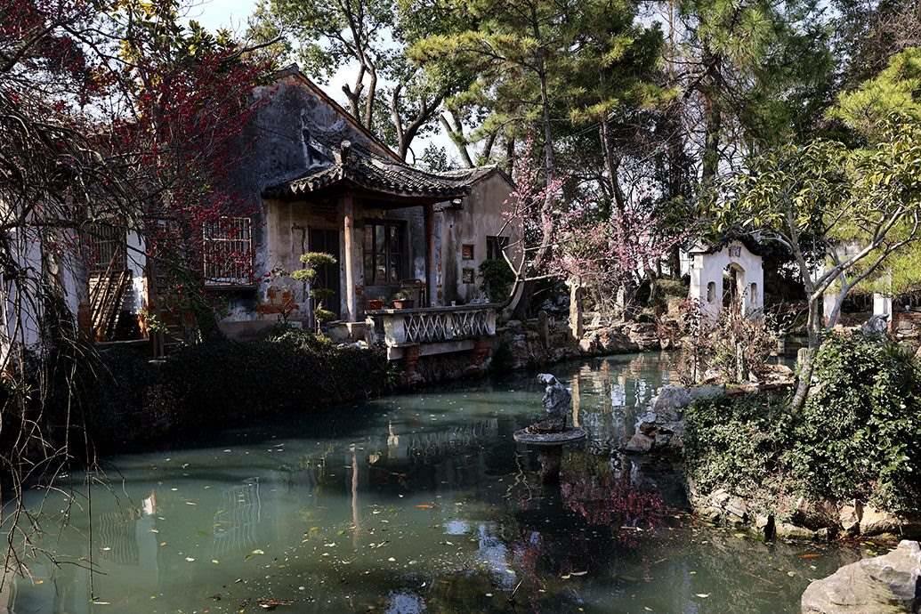 初見影園,第一眼并不算驚艷。斑駁的紅磚外墻、90年代常見的用以防盜的玻璃碎片扎進墻頭邊沿,似乎就是鄉(xiāng)村里最普通的宅院,很難和蘇州園林扯上關系。不過,一推開門,影園就開始不動聲色地“顯山露水”。