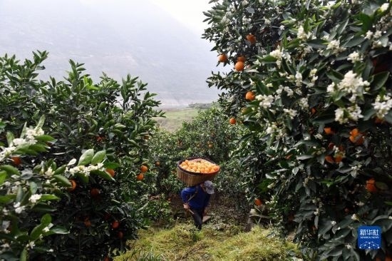 眼下,有“中國臍橙之鄉(xiāng)”美譽(yù)的三峽庫區(qū)湖北省秭歸縣長江兩岸橙花盛開,晚熟臍橙掛滿枝頭,花果同樹的橙樹與峽江景觀相映如畫。