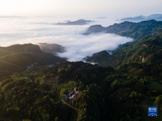 這是4月19日拍攝的金佛山云海景觀(無人機照片)。