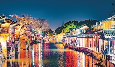 浙江省嘉興市嘉善縣西塘古鎮(zhèn)近年來加快推進“微改造、精提升”,助推古鎮(zhèn)夜經(jīng)濟發(fā)展。圖為古鎮(zhèn)夜景。袁新宇攝(人民視覺)