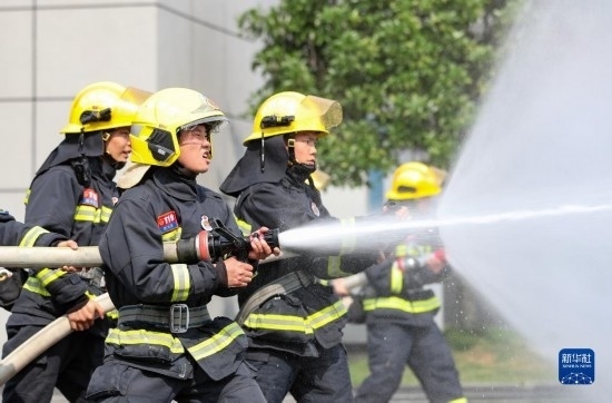 5月4日,貴州省銅仁市玉屏侗族自治縣消防救援大隊青年消防員在進(jìn)行訓(xùn)練。