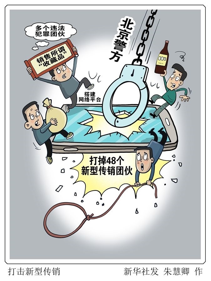 新華社北京5月13日電(記者魯暢、吳文詡)“5·15”全國公安機關打擊和防范經濟犯罪宣傳日來臨之際,北京警方通報去年以來針對新型傳銷團伙打擊情況:多個違法犯罪團伙通過搭建網絡平臺銷售所謂“收藏品”,并通過招募會員,循環(huán)售賣炒至高價,造成“底層會員”承擔高額損失,已有48個團伙被打掉。