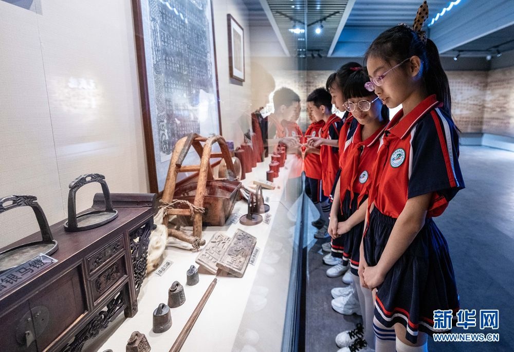 5月17日,呼和浩特市玉泉區(qū)南茶坊小學學生在歸化城展示館參觀老物件。新華網發(fā)(丁根厚攝)