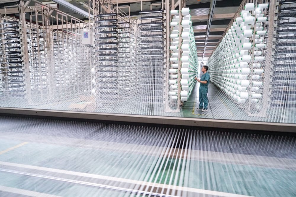 工人在位于蘇州市吳江區(qū)盛澤鎮(zhèn)的恒力集團博雅達(dá)紡織智能車間作業(yè)(2021年5月14日攝)。新華社記者 李博 攝