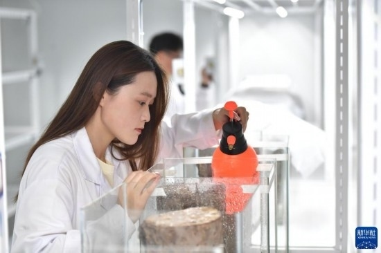 5月31日,在沈陽工學(xué)院遼寧省危險(xiǎn)性林業(yè)有害生物防控重點(diǎn)實(shí)驗(yàn)室,生命工程學(xué)院同學(xué)進(jìn)行接種與栽培實(shí)驗(yàn)。