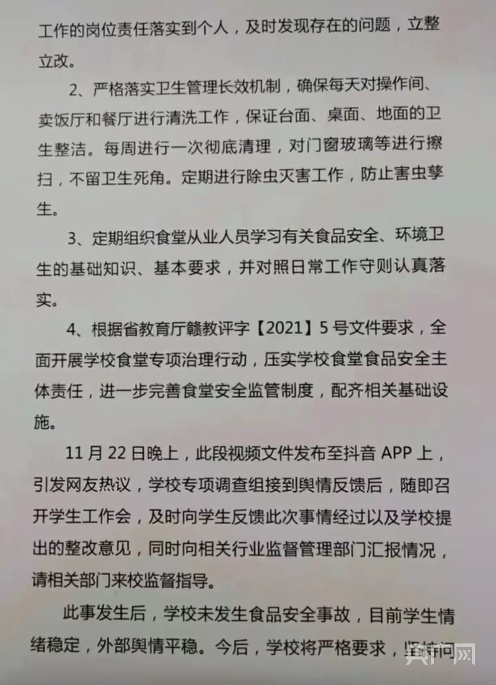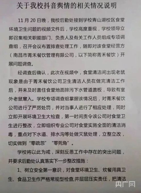 2021年,南昌市場監(jiān)督管理局就曝光該校有老鼠問題的情況說明(視頻截圖)