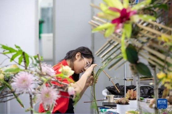 6月6日,選手在進行花藝項目比賽。
