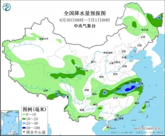 6月29日至30日,四川盆地、黃淮南部、江淮、江漢、江南北部、西南地區(qū)東部及東北地區(qū)等地有中到大雨,部分地區(qū)暴雨,湖北東部局地大暴雨,上述地區(qū)局地伴有明顯短時(shí)強(qiáng)降水、雷暴大風(fēng)或冰雹等強(qiáng)對(duì)流天氣。
